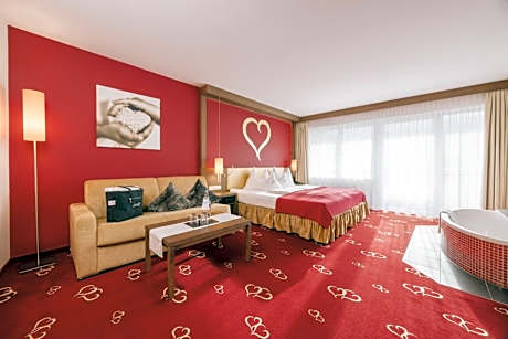 Located right next to the ski slope and the cable car to the Serfaus-Fiss-Ladis skiing and hiking area, the Alpen-Herz Romantik & Spa - Adults Only features a large spa area and an indoor pool directly connected to the outdoor pool. Spa facilities include a bio sauna, Finnish sauna, and steam bath. The indoor pool offers panoramic mountain views and features a counter-current system. A wide range of beauty treatments, as well as romantic massages for couples, is offered. The spacious rooms at the Alpen-Herz Hotel come with a balcony or terrace, a living area featuring a hi-fi system and an HD TV, and a spacious bathroom with a walk-in shower, hairdryer, and granite washbasin. Bathrobes, slippers, and bathing towels are provided. In the 2 dining rooms, characteristic Tyrolean specialties and international cuisine are served. Afterwards you can spend relaxing hours in the bar and lounge which features an open fireplace. Half-board includes a rich breakfast buffet, an afternoon buffet with sweet and savory dishes, and a romantic 6-course dinner with a choice of dishes. From June till the middle of October, you can use the cable cars in Serfaus-Fiss-Ladis free of charge and enjoy many activities in the surroundings, including horse riding, rafting and paragliding. An adventure park with a summer toboggan run can be reached within 10 minutes by cable car. In winter, ski passes can be purchased directly at the reception.