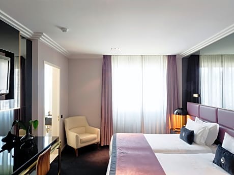 The 5-star Altis Avenida Hotel offers luxury accommodations in the heart of Lisbon city. It is within a 5-minute walk from the shopping triangle, Rua Augusta Street, Chiado and Liberdade Avenue. Altis Avenida Hotel is housed in a historical building, where guests will find a mix of traditional Portuguese architecture and design inspired by Art Deco. The plush rooms feature signature retro-style furniture with the soft shades of the leather headboards. Some rooms offer views of Lisbon's historical downtown and balconies. With a singular view over Lisbon and Tagus River, the Rossio Gastrobar offers a surprising menu of shareable dishes, a signature menu of cocktails and a careful selection of wines. A tasty breakfast buffet may be enjoyed on the 7th floor with a panoramic view over Liberdade Avenue. With a 24-hour front desk, the hotel features a business center and meeting rooms. Laundry, dry cleaning, ironing and shoeshine services are provided, upon an extra fee. A car rental service is also available. The Altis Avenida Hotel is steps from Rossio Station and close to Santa Justa Elevator. Historic Chiado features many traditional shops and cafés, at a 10-minute walk. Also within a 10-minute walk are the bars of the popular Bairro Alto district. Portela International Airport is 4.3 mi from Hotel Altis Avenida.