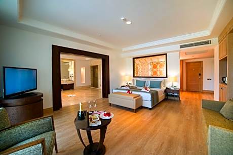 Located in the seafront of Beldibi, Juju Premier Palace Hotel offers a private beach, indoor and outdoor swimming pools and water slides. Spa facilities include a sauna, Turkish bath, massages and various treatments. Modernly decorated, the rooms of Juju Premier Palace Hotel include a flat-screen TV, mini-bar, an electric kettle and free WiFi. They all offer a balcony and sea, mountain or garden views. 24-hour room service is available. The main restaurant serves breakfast, lunch and dinner in open buffet style. There are 3 à la carte restaurants offering dishes of Far East, Italian cuisine and seafood(reservation with extra charge). Antalya Airport is 25 mi away.