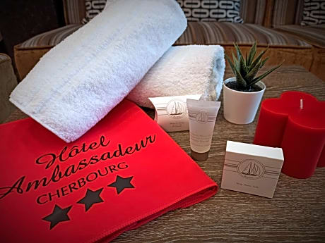 Ambassadeur Hotel is located in Cherbourg. Free Wi-Fi access is available and the ferry terminal is 2625 feet away. The rooms feature a TV with satellite channels and a private bathroom with a bath or shower, a hairdryer and free toiletries. A welcome tray with tea and coffee making facilities is offered in each room. Some of the rooms have a Marina View. A gluten-free breakfast is available daily. Other facilities offered include luggage storage and a 24-hour reception. A public car park is available at a location nearby and the hotel is 2297 feet from La Cite de la Mer Museum.