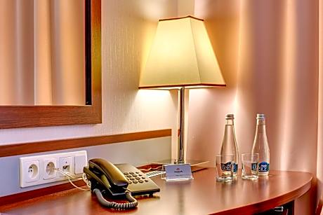 Stylish room with a 32-inch flat-screen TV with satellite and cable channels. It also features a safety deposit box and a hairdryer in the bathroom. Guests can request an electric kettle and a DVD or a CD player.
