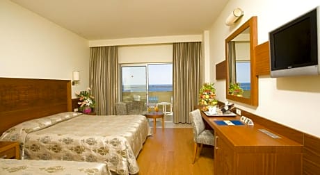 DOUBLE SEA VIEW is 355 square feet and includes a double bed 131-150 width plus balcony, satellite tv , hairdryer, and safe and is Wheelchair-accessible.