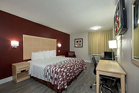 Located off I-440, this hotel is adjacent to Crabtree Valley Mall and 5 mi from downtown Raleigh. It features modern rooms with free Wi-Fi. UNC REX Hospital is 2.9 mi away. A microwave and refrigerator are standard in every spacious room at the Red Roof Inn Raleigh North-Crabtree Mall-Lenovo Center. All rooms include a cable TV. Laundry facilities and free on-site parking are also available. The North Carolina Museum of Art, PNC Arena and North Carolina State Fairgrounds are 5 mi from the hotel. North Carolina State University is a 12-minute drive away.