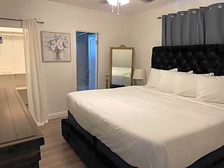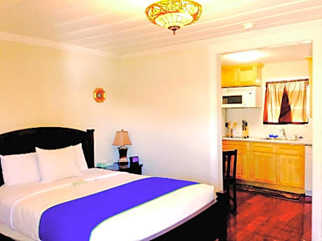This warmly decorated room includes a microwave, small fridge and a flat-screen cable TV. Some rooms have an interconnecting door to another queen room. There is free Wi-Fi.