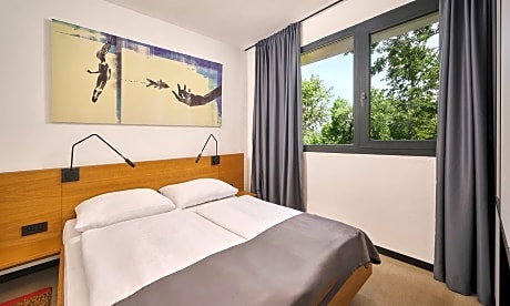 LILIUM is 388 square feet and includes a double bed 131-150 width plus desk, satellite tv , and hairdryer.
