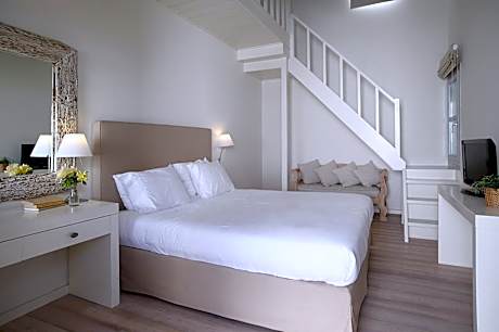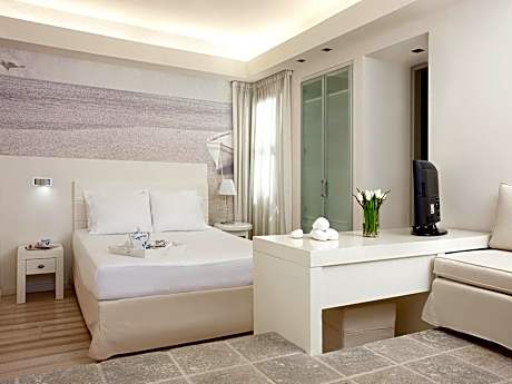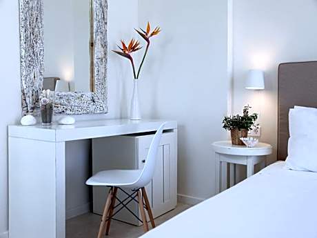 Just 197 feet from Magazia Beach, the whitewashed Ammos Hotel features an outdoor pool surrounded by modern sofas and sun loungers on a decked terrace. It offers elegant accommodations with garden or Aegean Sea view and free Wi-Fi. Fitted with high ceilings and decorated in white tones, all rooms include air conditioning, a flat-screen TV with satellite channels and mini-bar. Each opens to a balcony, patio or spacious terrace, while some are split-level. A hairdryer and branded toiletries are available in the modern bathroom. A free welcome drink is offered. Guests at Ammos can start their day with a traditional breakfast enriched with handmade jams, pies, local cheeses and honey. Drinks and light meals are served at the poolside bar. Ammos Hotel lies 6.8 mi from Skyros Port. The nearest taverns and cafés can be found at just 98 feet. Free parking is possible nearby. License Number(s): 1022686