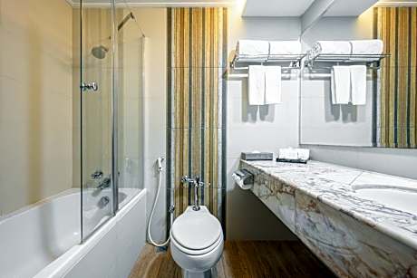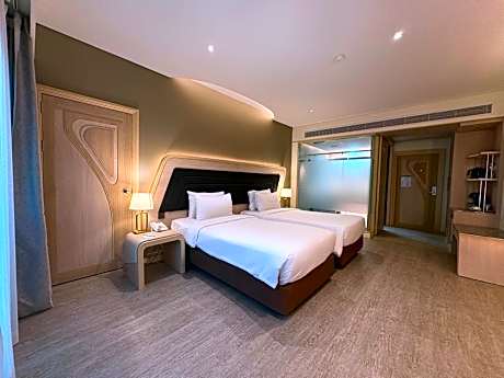 The spacious double room features air conditioning, a mini-bar, a balcony with pool views as well as a private bathroom boasting a bath. The unit has 2 beds.