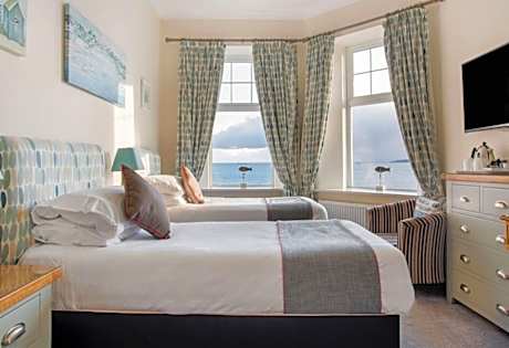 With stunning sea views over Falmouth Bay, this AA 5-star bed & breakfast offers rooms with attached bathroom, residents' lounge, licensed bar, sun terrace and car park. Anacapri rests in a wonderful location overlooking the Blue Flag sandy beach of Gyllyngvase. Magnificent uninterrupted views across Falmouth Bay give a breath of the Mediterranean. Falmouth's pretty town center with cobbled streets, famous harbor and the National Maritime Museum are a short walk from the hotel. Beautiful coastal walks are also nearby. The bedrooms have a contemporary feel and stunning sea views are seen from the lounge, most bedrooms and from the exterior terrace.