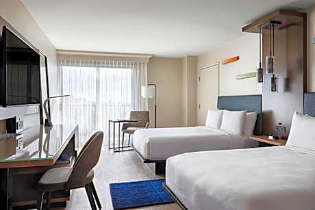 The Anaheim Marriott hotel is located next to Anaheim Convention Center and 15 minutes' walk away from Disneyland and Ultrastar Cinemas. It includes an on-site swimming pool and restaurant. All rooms include marble bathrooms and flat-screen TVs. Every air-conditioned room at the property includes a hairdryer, complimentary toiletries, a mini-refrigerator, and an iron with an ironing board. The Anaheim Marriott provides a restaurant, nFuse, that offers a selection of California microbrews, premier wines and handcrafted cocktails. The menu features California cuisine influenced by cultures around the globe. There is also The Market Cafe on site. The hotel is in the heart of the Anaheim Resort District heart of Orange County and less than 1 mi from the Anaheim GardenWalk. The Strand at Huntington Beach and the Pacific Ocean is 14 mi away.