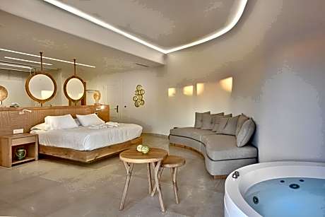 Boasting a seafront location in Agios Ioannis in Mykonos, Anax Resort ideally blends Cycladic architecture with modern amenities. Facilities include a superb spa center offering an abundance of beauty treatments, infinity pool, hot tub and a restaurant serving fine Mediterranean cuisine. A private beach area is also available. Stylish and spacious, the bright units at Anax Resort and Spa open to a balcony and patio with magnificent views of the sea. Some feature their very own private pool. Each features an elegant bathroom stocked with a spa bath and shower, while free toiletries are also offered. A smart TV and Bluetooth access is available in every unit. Air conditioning comes standard. Guests will find a fully equipped gym within the premises. The services that can be enjoyed at the spa center range from hammam and sauna to rejuvenating massages and facial treatments. The poolside bar offers lounge-style sunbeds and a wide variety of premium cocktails. Other options include a lobby bar and a snack bar. Free WiFi is available throughout. The cosmopolitan center of Mykonos, boasting an array of exclusive boutiques and high-profile bars and restaurants, lies within approximately 2.8 mi of Anax Resort and Spa. The lively Psarou Beach is at 2.5 mi. Mykonos Airport is 3.1 mi away. Free private parking is possible on site.