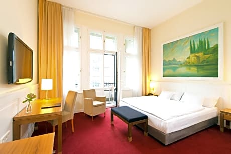 Angleterre Hotel Berlin offers top-notch services and amenities, ensuring guests experience utmost comfort. Complimentary internet access is available in the hotel to ensure you stay connected during your visit.Discover the wonders of Berlin with ease by utilizing the services provided by taxi and car hire.For guests with their own vehicle, parking facilities are provided. Continuously receive the support you require through front desk amenities such as concierge service, express check-in or check-out, luggage storage and safety deposit boxes.At the hotel, their ticket service can even assist you in booking tickets and securing reservations for leisure activities and adventures.Always look your best in your preferred attire with the dry cleaning service and laundry service provided at Angleterre Hotel Berlin.Craving relaxation? In-room amenities such as room service and daily housekeeping allow you to maximize your time spent inside the room.Due to health concerns, smoking is strictly prohibited within the entire premises of hotel. For the health and well-being of all guests and staff, smoking is restricted exclusively to assigned zones. Accommodations come equipped with all the conveniences required for a restful night's slumber.A selection of rooms at Angleterre Hotel Berlin come furnished with air conditioning to cater to your needs and comfort. A few accommodations at Angleterre Hotel Berlin also include unique design elements like a balcony or terrace.A few chosen rooms are equipped with daily newspaper, in-room video streaming and cable TV to ensure guest amusement.In certain rooms, the hotel offers visitors access to bottled water and mini bar. Angleterre Hotel Berlin offers a hair dryer and toiletries in the restrooms of specific accommodations. A delightful breakfast is the perfect way to begin your day, and at Angleterre Hotel Berlin, you can always indulge in a scrumptious meal on-site.Allow your journey to be free from the pangs of hunger! On-site eateries offer delicious and accessible meal choices.An evening spent at hotel's bar can offer as much enjoyment as venturing out with your fellow travelers. Angleterre Hotel Berlin provides a superb assortment of leisure amenities for guests to enjoy.Conclude your days in complete tranquility by paying a visit to massage and sauna for ultimate relaxation. At the hotel fitness center, you have the option to engage in your daily exercise routine or simply alleviate your jet lag by breaking a sweat.