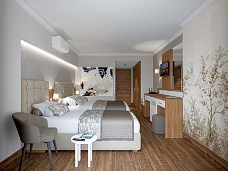 In the seafront, Annabella Diamond Hotel&Spa offers a private sandy beach with free lounge chairs and sun umbrellas. The hotel has an outdoor pool with 3 water slides, air-conditioned rooms, and a spa center. The rooms are tastefully decorated with modern furniture. All rooms include a flat-screen TV, minibar, and free Wi-Fi. There is a balcony in each room. Some rooms also have views of the Mediterranean Sea. The restaurant of Annabella serves meals in open buffet style. The bars offer a variety of alcoholic and non-alcoholic drinks during the day. There is a well-equipped fitness center at the hotel. After a workout, you can relax with a Turkish bath or enjoy the sauna. An indoor pool is also available on site. The hotel is just over 1 mile from Avsallar town center and 17 miles from the center of Alanya district. Antalya Airport is 62 miles away.
