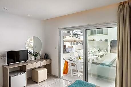 Milea Hotel is located in the heart of Ayia Napa, only 492 ft from the perfect sandy beach of Limanaki. Selected shops, restaurants and bars are within easy reach, while the main activities of the town’s busy center are only 5-10 minutes walk, Milea Hotel offers a seasonal outdoor swimming pool, a bar and air-conditioned accommodations with a patio and free WiFi. All units consist of a seating area with a sofa and equipped with hairdryer cable TV safe box and shower . A balcony with sea views is offered in most of the units. A sun terrace is available for guests to use at the aparthotel.