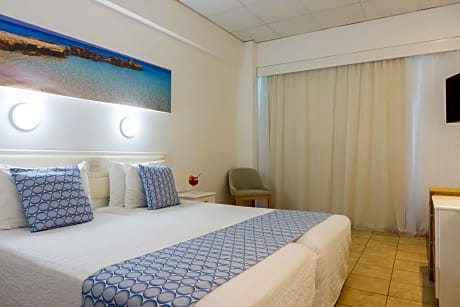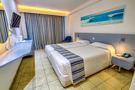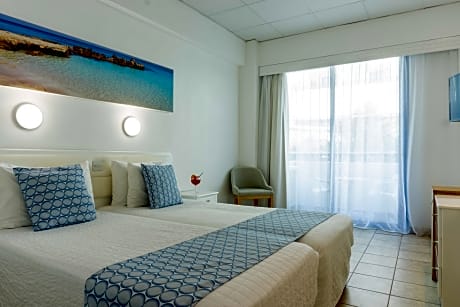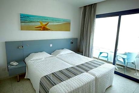 Enjoy a break on the white sands and clear waters of Ayia Napa with a stay at this modern holiday hotel, set beside Sandy Bay on the island of Cyprus. Surrounded by tropical palm trees, the Anonymous Beach Hotel features its own outdoor swimming pool bathed in Mediterranean sunshine. There is also an a la carte restaurant where you can enjoy the regular entertainment and themed evenings. Guests can start their day with a buffet breakfast, while certified Cypriot breakfast can also be enjoyed on Tuesday and Friday. Then choose from the à la carte lunch selection and themed evening buffets beneath the stars. The hotel is located in front of sandy bay. Here you can simply relax or try out the range of exciting water sports on offer.