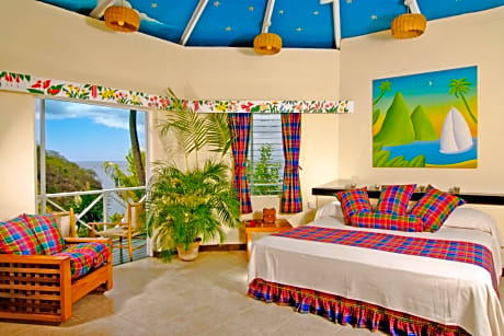 Set on a lush tropical estate, Anse Chastanet Resort is between Anse Chastanet and Anse Mamin beaches, and offers wonderful views of Petit and Gros Piton mountains and the Caribbean Sea. All rooms feature clay tile or tropical hardwood floors, a ceiling fan and louver windows. Each has a spacious bathroom and a balcony or patio. Some offer views of the sea, others of the mountains and gardens. You can enjoy typical Caribbean or international food at Anse Chastanet Resort’s Terehouse Restaurant. There is a also a vegetarian restaurant, which serves dishes made with organic products from the resort’s plantation. The staff can give you information on sights and outdoor activities in the surrounding area. The resort also has a fitness center and spa, and water sports facilities are available on site.
