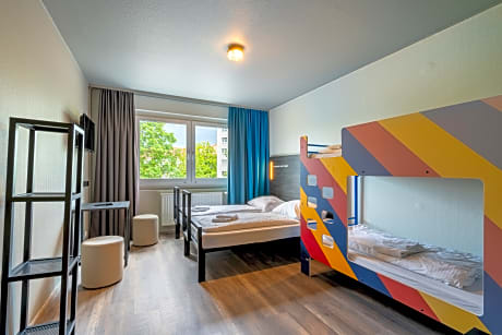 This hotel in the Lichtenberg district of Berlin offers modern rooms. The famous Alexanderplatz square is a 15-minute tram ride away. All rooms at the a&o Berlin Kolumbus include satellite sports channels and a private bathroom with hairdryer. Free WiFi is available throughout the property. Pork-free breakfast can be ordered at the hotel. In the evenings, the lobby bar offers a variety of drinks. Guests can enjoy satellite TV broadcasting various sport channels in the lobby and bar. The nearest tram stop is just a 5-minute walk from the a&o Berlin Kolumbus.
