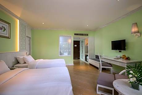 Aonang Villa Resort Beach Front offers top-notch services and amenities, ensuring guests experience utmost comfort. Complimentary internet access is available in the resort to ensure you stay connected during your visit. Arrange your trips to and from the airport using the resort's convenient transportation services booking. Amenities at taxi offered by Aonang Villa Resort Beach Front simplify the organization of your excursions, tourist activities, and other adventures in Krabi.Complimentary parking is available for guests. Continuously receive the support you require through front desk amenities such as concierge service, express check-in or check-out, luggage storage and safety deposit boxes. At the resort, their ticket service and tours is also capable of assisting with booking tickets and securing reservations for entertainment and adventures.Always look your best in your preferred attire with the dry cleaning service and laundry service provided at Aonang Villa Resort Beach Front . Craving relaxation? In-room amenities such as room service and daily housekeeping allow you to maximize your time spent inside the room.For the health and well-being of all guests and staff, smoking is restricted exclusively to assigned zones.Accommodations come equipped with all the conveniences required for a restful night's slumber.A selection of rooms feature linen service, blackout curtains and air conditioning to ensure your comfort and convenience. A few accommodations at Aonang Villa Resort Beach Front also include unique design elements like a balcony or terrace.A few chosen rooms are equipped with television and cable TV to ensure guest amusement. In certain rooms, the resort offers visitors access to a refrigerator, a coffee or tea maker, bottled water, instant coffee and mini bar.Aonang Villa Resort Beach Front offers a hair dryer, toiletries and bathrobes in the restrooms of specific accommodations. A delightful breakfast is the perfect way to begin your day, and at Aonang Villa Resort Beach Front , you can always indulge in a scrumptious meal on-site. All adore a delightful cup of coffee! An on-site coffee shop ensures you can relish a cup of authentic, freshly-brewed coffee every morning -- or whenever you desire it.Allow your journey to be free from the pangs of hunger! On-site eateries offer delicious and accessible meal choices.An evening spent within the resort's bar and nightclub may prove to be just as entertaining as venturing out with your fellow adventurers.At Aonang Villa Resort Beach Front , experience the ease of having groceries brought straight to your accommodation through their efficient service. Are you a fan of preparing your own dishes? You'll certainly appreciate the onsite BBQ facilities and shared kitchen for your culinary needs. Aonang Villa Resort Beach Front provides a superb assortment of leisure amenities for guests to enjoy.Conclude your days in complete tranquility by paying a visit to massage, hot tub, salon, steam room and sauna for ultimate relaxation.At Aonang Villa Resort Beach Front , a wide array of amenities guarantees a fulfilling experience throughout your visit. Make your holiday truly memorable by taking a rejuvenating plunge into the pool. At Aonang Villa Resort Beach Front , the poolside bar provides an excellent incentive to enjoy extended hours in your swimwear.At the resort fitness center, you have the option to engage in your daily exercise routine or simply alleviate your jet lag by breaking a sweat.