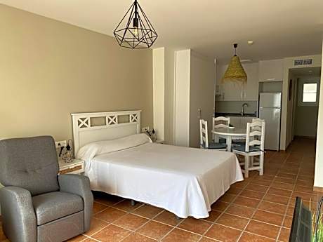 Located in the fishing village of San José, in the Cabo de Gata Natural Park, Vistamar San José offers apartments with sea views. It has a swimming pool, mini golf and a free Wi-Fi zone. The San José apartments all have lounge-dining room and a terrace or balcony. The kitchen has washing machine, oven, hob, fridge and microwave. The apartments also have 20-inch TV, air conditioning, safe and direct telephone. They are cleaned daily. Apart from the swimming pool, the complex has a sauna. There is also a sun terrace with loungers and free onsite parking. The café offers light meals and drinks. There is a computer with free internet access available to guests. Calilla Beach is just 164 feet away. The area offers a wide range of activities, including diving, horse riding and mountain biking.