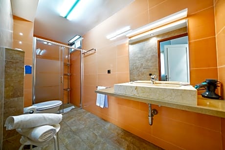 Tamara ground floor deluxe with terrace is 431 square feet and includes 2 single beds 80-130 width plus balcony, terrace, desk, satellite tv , hairdryer, tea and coffee making facilities , and safe.