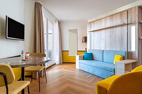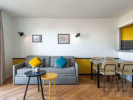 Aparthotel Adagio Paris Montrouge is located in the lively city of Montrouge, less than 0.6 mi south of Paris. This eco-friendly property offers fully equipped apartments and studios with free WiFi access. This Aparthotel Adagio offers a 24-hour reception and an outdoor garden. The accommodations come with a TV, telephone and air conditioning. Each has a private bathroom complete with a bath and hairdryer. An end-of-stay cleaning service is available. Some apartments have facilities for guests with reduced mobility. You can prepare homemade meals in the fully equipped kitchen using the stove, microwave and fridge provided. There is also a dishwasher, and a dining area. A bowl and toast bar as well as sweet and savory dishes are offered. A buffet breakfast is served each morning in the property's breakfast room. The aparthotel is a 10-minute walk from Mairie de Montrouge Metro Station, providing direct access to central Paris. Porte de Versailles Exhibition Center is 1.6 mi away. Private parking is available on site at an extra cost.