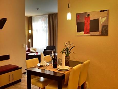 Apartmenthotel Quartier M is a self-catering accommodations located in Leipzig with free WiFi access. The property is 0.9 mi from Arena Leipzig and 4.1 mi from Leipzig Trade Fair. The apartments and double rooms are stylishly decorated and have an open floor plan. Each one features a seating and dining area, flat-screen cable TV, and a modern bathroom with hairdryer. All studios and apartments (but not the double rooms) have a fully equipped kitchen, complete with dishwasher, coffee machine and microwave. Many shops, supermarkets and restaurants are nearby. Several museums are reachable within a 10-minute walk of Apartmenthotel Quartier M, including the Museum of Natural History. Johanna City Park is 1640 feet away. Wilhelm-Leuschner-Platz Train Station is just 656 feet from Apartmenthotel Quartier M. This offers great city train and tram connections, including direct links to Leipzig Main Station and the Leipzig Trade Fair.