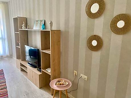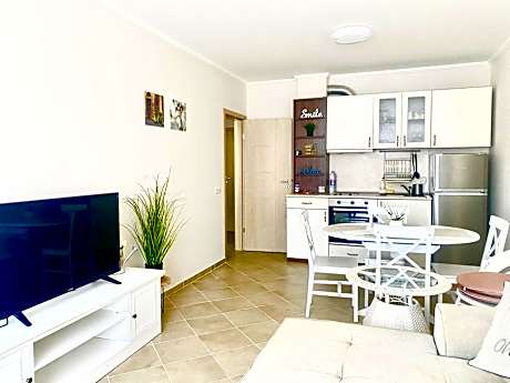 Apartments in Sunny Island Complex offers air-conditioned rooms in Chernomorets. This beachfront property offers access to a balcony and free private parking. The condo hotel provides an outdoor swimming pool, fitness room, and an elevator. Accommodations for disabled guests are also available. The condo hotel provides guests with a terrace, garden views, a seating area, satellite flat-screen TV, a fully equipped kitchen with a microwave and a fridge, and a private bathroom with shower and free toiletries. A stovetop and kitchenware are also provided, as well as a coffee machine and a kettle. At the condo hotel, all units are fitted with bed linen and towels. For guests with children, Apartments in Sunny Island Complex features kids pool and outdoor play equipment. A car rental service is available at the accommodation. Chernomorets Camping Beach is a few steps from Apartments in Sunny Island Complex, while Poda Birdwatching Spot is 10 miles from the property. Burgas Airport is 23 miles away, and the property offers a paid airport shuttle service.
