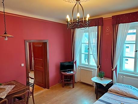 Apartments Kájovská 63 provides accommodations within a few steps of the center of Český Krumlov, with free Wifi and a kitchenette with a microwave, a fridge, and a stovetop. The property is around 16 miles from Přemysl Otakar II Square, 17 miles from Main Bus Station České Budějovice, and 17 miles from České Budějovice Train Station . The condo hotel offers city views and a children's playground. At the condo hotel, every unit has a wardrobe, a flat-screen TV, a private bathroom, bed linen, and towels. The condo hotel features certain units with river views, and units include a kettle. At the condo hotel, all units include a seating area. A mini-market is available at the condo hotel. Guests at the condo hotel will be able to enjoy activities in and around Český Krumlov, like cycling and hiking. Popular points of interest near Apartments Kájovská 63 include Castle Český Krumlov, Main Square in Český Krumlov, and Rotating Amphitheatre. Ceske Budejovice Airport is 16 miles away.