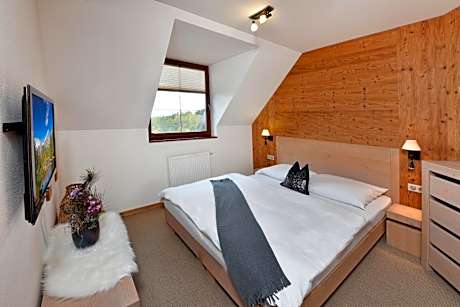 Featuring a spa area, Kukučka Mountain Hotel and Residences is centrally located in Tatranská Lomnica Ski Resort, 656 feet from one of the steepest cable cars in Europe, going to Lomnický Peak. It offers modern-style accommodations with free Wi-Fi and a ski-to-door access. The hotel also offers a conference room for rent. All apartments are decorated in mountain style design featuring wooden furnishings as well as stone walls. They come with a seating area and bedrooms, each equipped with a flat-screen TV. All guests staying at Hotel Kukučka also have the opportunity to use the services of the Koliba Kamzík restaurant, which is located on the ground floor of the hotel. One free entrance into a wellness area per person is included in the price per stay. The wellness area offers a steam sauna, dry sauna and a relaxation room with total capacity of 8 people. The nearest grocery shop, as well as the Main Bus and Train Station, are 1640 feet away. A golf course can be reached within 5 mi. Free private parking is available on site.