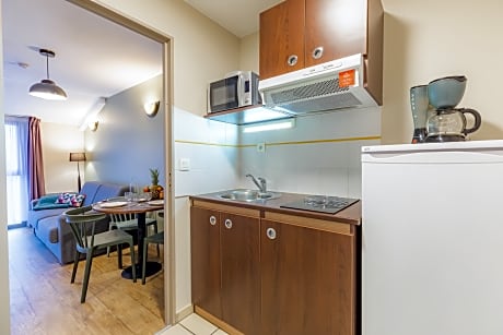 Set in a former abbey, this residence is located in Angoulême, on the banks of Charente River and a 15-minute walk from Saint-Pierre Cathedral. It offers studios and apartments with a living room and flat-screen TV. Each modern apartment has a kitchen with hotplates and a microwave. Some also have a dishwasher. Free WiFi and wired internet access are available and the private bathrooms are fitted with a shower. A buffet breakfast is served from Monday to Saturday in the breakfast room at the Appart’City Angoulême. Breakfast is composed of bread, pastries, juices and hot beverages. Fresh fruit, as well as cheeses, yogurts, eggs and ham are also provided. There is a vending machine at reception selling snacks. Angoulême Train Station is 1.1 mi away. Private parking is also available on site at an extra cost and upon prior reservation.
