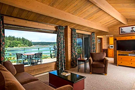 Located on Quadra Island, April Point Resort is a 10-minute BC Ferries boat ride from Campbell River. The resort is a short 5-minute drive from the Quathiaski Cove Ferry terminal. Enjoy breathtaking views of Discovery Passage, Gowlland Harbor and the Coastal Mountains. Your accommodations includes Cable TV, wifi, in-room coffee and parking. Our dining facilities are open daily for Lunch and Dinner. There is no scheduled water taxi shuttling to Painter's Lodge. To pre-arrange a water taxi, please contact the Marine Center at Painter's Lodge for details.