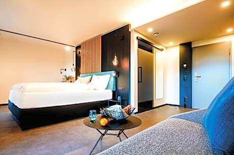 Right in the center of Bad Füssing is the new Hotel Aqua Blu. With a flair for straightforward lifestyle and simple beauty. This top hotel offers stylish rooms with private balcony, large flat-screen satellite TV, coffee machine, fridge, free Wi-Fi and a spacious bathroom with shower and hairdryer are also available. The hotel offers many facilities such as an Ayurvedic healing practice, physiotherapy, massage practice, a saltwater summer pool with daybeds in the garden and a coffee and cocktail bar. In the morning you can fortify yourself with a rich breakfast buffet. In the evening, you can indulge in our 3-course dinner in the restaurant or enjoy delicious snacks such as burgers, club sandwiches and Cesar salads in our Cafe blu Bar. Therme 1 and the beautiful sauna courtyard are in the immediate vicinity and can be booked on site for an additional charge. The hotel's own bathrobe shuttle will take you to Therme 1 and Saunahof free of charge. The accommodations location Bad Füssing is in the immediate vicinity of the excursion destinations with many sights such as Bad Griesbach, Bad Birnbach, Passau and the Bavarian Forest. For the sake of the environment, to conserve resources and also for more undisturbed privacy during your holiday, the housekeeping staff will only clean your room when you want them to. You are completely free in your decision.