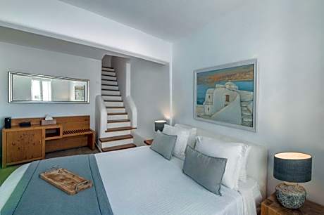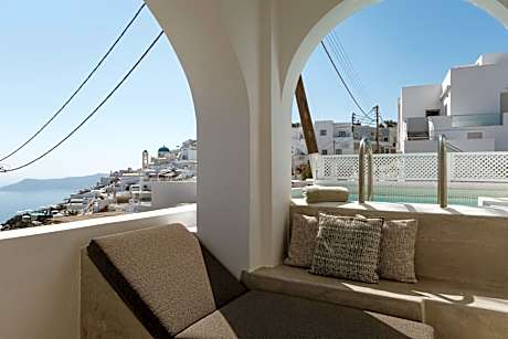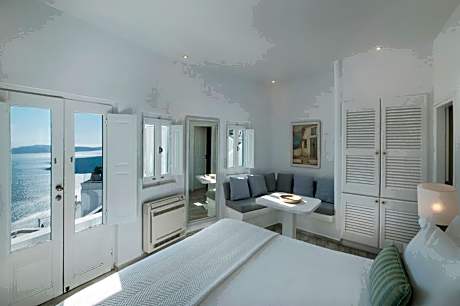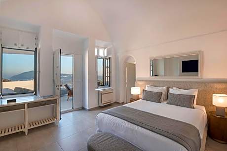 Nestled in Imerovigli, the family and couple-friendly Aqua Luxury Suites complex offers upscale Suites and Villas in an inspiring setting and features Caldera and Volcano sea views. All Suites are uniquely decorated with hand-picked items and the majority of them open out to a private use balcony or terrace. Several Suite categories have their own hot tub or plunge pool. Please note that the property does not feature any common swimming pool but operates a small common heated tub at our Restaurant-Bar terrace, which offers a magnificent view of the Volcano and operates from May until the middle of October. The Suites that offer an outdoor hot tub or an outdoor plunge pool reach up to 35 °C degrees during the Summer Season and up to 27°C degrees during the Winter Season. Aqua Luxury Suites serves an "a la carte" breakfast in the privacy of your Suite. The property is 1.9 mi away from Fira, 5 mi away from Oia, 5 mi from the Airport and 6.8 mi from the port. License Number(s): 1167K070B1084601