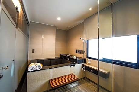 Features a hot spring bathtub, wooden flooring and a flat-screen TV.