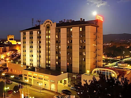 Located in Chaves, Aquae Flaviae is located next to the city's thermal baths, which have medicinal properties. The centrally located hotel is 492 feet from the city center and has a tennis court and a restaurant. Free WiFi is also available. Chaves Municipal Stadium is 1.9 mi away and there s a kids park 100mts by. Hotel Aquae Flaviae’s rooms are decorated in light tones. Each air-conditioned room features a seating area with a Smart TV and a safety deposit box. An in room breakfast is available upon request. Regional and international cuisine are served in Aquae Flaviae’s smart-casual restaurant. Warm drinks and Portuguese wines are available in the lounge bar. The Hotel Aquae Flaviae is located just 328 feet from the historical city center. The tour desk can help guests organize several activities and day trips.