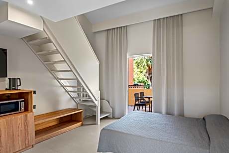 Traditionally built with respect to Corfu architecture, Aqualand Resort is located next to Aqualand Waterpark in Agios Ioannis. Facilities include waterslides, pools and restaurants. Opening to a balcony with garden, pool and mountain views, all studios and apartments at Aqualand Resort are bright and offer air conditioning. Each has a seating area with flat-screen and satellite TV. Guests may relax at the pool bar, preparing refreshing beverages and drinks. A restaurant and fast food facilities feature options for dining. A playground of 200 m2 is available for the younger guests’ entertainment as well as a garden with grassy areas, plants and trees. Sports’ oriented facilities such as a tennis court and a fitness center are featured. The scenic town and the port of Corfu are 5.6 mi away, while free shuttle services are offered. Ioannis Kapodistrias International Airport is at a distance of 5.3 mi. Free public parking is possible on site. License Number(s): 1065381