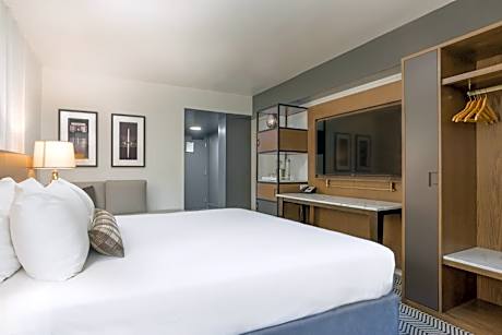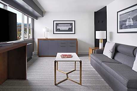 Each guest room at ARC The Hotel has been thoughtfully designed to provide comfort and convenience. Amenities include a 32-inch flat-screen TV, a well-stocked refrigerator, and a coffee/tea bar. Enhanced by a virtual concierge and personal safe, these spaces offer a serene haven after a bustling day exploring the capital. Delight in the ease of Grab n' Go meals, perfect for guests on the move.