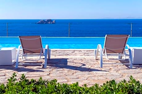 Built just outside Parikia, 5-star Archipelagos Resort offers a magnificent view of the Aegean Sea. It features an outdoor swimming pool with deck chairs and a gourmet restaurant. Archipelagos Resort offers minimal Cycladic-style rooms, most with sea-view balconies. Each is air conditioned and has an LCD satellite TV, free Wi-Fi, safety box and a kitchenette with mini-bar. Mediterranean and Greek flavors are proposed at the hotel’s restaurant. Room service is available for a romantic dinner on your veranda or terrace. A lighter fare is provided at the pool bar. The luxury Archipelagos Resort also offers a mini gym with a sauna room and hot tub. Reception is available 24 hours a day. Staff can assist guests with tickets or car rental, propose and make reservations to selected traditional restaurants and suggest places to visit. Archipelagos Resort is conveniently located between the main port of Parikia at 3.1 mi and the local airport 4.3 mi away. Free parking is available on site.