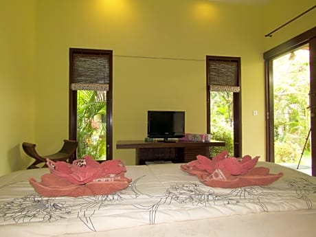 Set amid traditional Balinese villages, Arco Iris Boutique Hotel & Restaurant is a 5-minute walk from Candidasa Beach. It offers an outdoor swimming pool, an on-site restaurant and free WiFi. Staff at the resort can arrange for snorkeling, diving and surfing activities. Alternatively, guests can also laze in the hot tub or by the pool. Car rental, airport transfer and concierge services are provided at the 24-hour front desk. Overlooking the garden, rooms come with high ceilings and vibrant wall colors. Each is equipped with a seating area and bathroom with a bathtub. Arco Restaurant & Bar serves a fine selection of Western dishes as well as local specialties. In-room dining options are possible with room service. Iris Arco Resort is a 30-minute drive from the White Sand Beach and Tirta Gangga Water Palace. It is a 1-hour drive from Kuta and a 1.5-hour drive from the lively Kuta and Seminyak areas. It takes a 90-minute drive to reach Ngurah Rain International Airport.