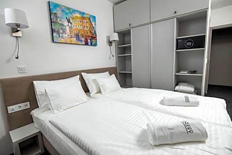 Located in Szeged and with Votive Church Szeged reachable within 1.8 miles, Arena Deluxe & Spa provides a shared lounge, non-smoking rooms, free WiFi throughout the property and a bar. The property is around 18 miles from Ópusztaszer Heritage Park, one mile from Szeged National Theater and 1.7 miles from New Synagogue. The wellness area includes a sauna, and hot tub, while a playground is also available. At the hotel, each room has a closet. Complete with a private bathroom equipped with a shower and a hairdryer, guest rooms at Arena Deluxe & Spa have a flat-screen TV and air conditioning, and selected rooms come with a terrace. All rooms will provide guests with a fridge. A buffet, continental or vegetarian breakfast is served at the property. At the accommodation you'll find a restaurant serving American, Italian and Pizza cuisine. Vegetarian, dairy-free and vegan options can also be requested. Dóm square is 1.9 miles from Arena Deluxe & Spa, while Szeged Train Station is 2.6 miles away.