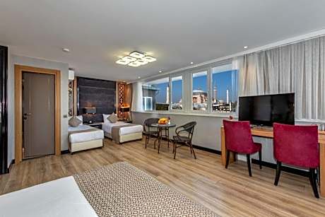 Experience an abundance of unparalleled facilities and features at Aristocrat Hotel.Share your photos and respond to emails at your convenience, thanks to the free Wi-Fi internet access offered by hotel.Should you require transportation to or from the airport, hotel is able to organize it prior to your arrival date.Services offered by car hire and shuttle at the hotel ensure effortless exploration of İstanbul. Visitors can take advantage of the accessible parking options directly at the hotel.Reception services such as concierge service, luggage storage and safety deposit boxes are available to accommodate your requirements.Securing top-notch tickets and snagging sought-after dining reservations become effortless, thanks to the hotel's ticket service and tours.Traveling with minimal baggage is achievable at Aristocrat Hotel, as the hotel's dry cleaning service and laundry service ensures your garments stay fresh. Room amenities like 24-hour room service, room service and daily housekeeping contribute to making a perfect selection for your stay.The hotel maintains a completely smoke-free zone, providing a breathable atmosphere.Each accommodation at Aristocrat Hotel is thoughtfully created and adorned to provide visitors with a comfortable, home-like atmosphere.In certain rooms, the hotel offers linen service, blackout curtains and air conditioning for guest convenience and satisfaction. At Aristocrat Hotel, the uniquely tailored rooms provide a configuration choice resembling a balcony or terrace.In select rooms, guests at the hotel can enjoy top-notch in-room entertainment with television and cable TV available for their convenience.Rest assured, in a few chosen rooms, you will find the convenience of a coffee or tea maker, bottled water and mini bar at your disposal. Maintain your cleanliness and comfort using a hair dryer and toiletries available in select guest restrooms. Embark on your holiday experience in the most ideal manner. Commence each morning of your visit with an on-site breakfast. Experience the delight of a fresh morning by savoring excellent coffee at the cafe situated within hotel.Should you prefer not to venture out for a meal, the enticing culinary choices at hotel are always available for your satisfaction. Should you be particularly discerning in your dining choices, you will surely appreciate having access to the on-site shared kitchen provided at this location.