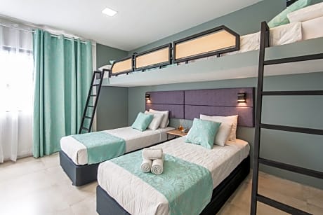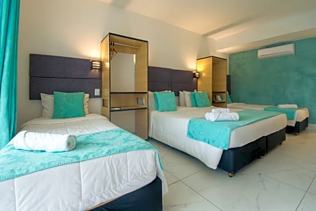 QUADRUPLE STANDARD is 237 square feet and includes either a double bed 131-150 width or 2 single beds 80-130 width.