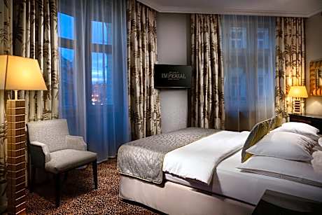 An impressive Art-Déco building in the center of Prague, the Imperial Hotel is decorated with precious mosaics and historic hand-painted tiles throughout its elegant interior. Fitness and spa facilities with a sauna and a steam bath are available for free. Old Town Square and Wenceslas Square can be reached on foot in 10 minutes. The metro station Namesti republiky (line B) and the Prague Main Train Station are just 656 feet away and the shopping mall Palladium is only 820 feet from the hotel. All rooms at the nonsmoking Imperial Hotel are decorated with rich fabrics and feature a laptop-size safe, 2 phone lines, a flat-screen satellite TV, films on demand and marble bathrooms with heated floors. Free WiFi is available in all areas. The famous Café Imperial on the ground floor offers a wide range of characteristic Czech specialties and international cuisine.