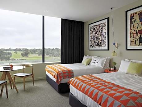 Embrace your inner art enthusiast when you visit The Larwill, Art Series Hotel. Inspiration welcomes you from the front door through to your luxurious studio room, fashioned with art from Australian artist David Larwill. This boutique hotel lies in the vibrant suburb of Parkville, just moments away from the Melbourne CBD, Queen Victoria Markets, Flemington Race Track, Melbourne Zoo, and a range of unique shopping and dining destinations. Onsite, enjoy views of Royal Park, The Gym Melbourne within the Royal Children’s Hospital, and The Farmacy Restaurant and Bar. Even more, we also offer conference and event spaces to host your next affair. Our premium accommodations options include King and Twin rooms equip with quality facilities. Indulge in a deluxe hotel experience when you stay at The Larwill. Enjoy a relaxed meal at The Farmacy Restaurant and Bar, then make the most of our conference and event spaces for your next gathering. Our King and Twin rooms are thoughtfully designed with quality facilities, making every stay at The Larwill feel effortless and memorable.