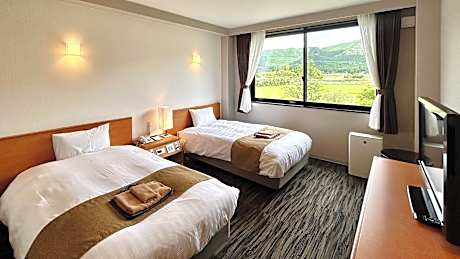 Aso Hakuun Sanso provides flawless service and all the necessary facilities for visitors.Maintain seamless communication using the complimentary Wi-Fi at hotel. Discovering Aso becomes even more accessible, thanks to the shuttle amenities provided at the hotel.For visitors traveling by automobile, complimentary parking is available. For extended visits or whenever required, the laundromat ensures your preferred travel garments remain fresh and accessible.During leisurely days and evenings, on-site amenities such as daily housekeeping enable you to fully enjoy your accommodation. Kindly note that smoking is prohibited in the hotel to ensure fresher air for all visitors. For visitors wishing to smoke, designated smoking zones can be found. At Aso Hakuun Sanso, every guestroom is provided with convenient amenities and fittings to ensure a comfortable stay.Enhance your experience at hotel with the knowledge that certain rooms are equipped with blackout curtains and air conditioning for your convenience. A few accommodations within Aso Hakuun Sanso offer unique design elements such as a balcony or terrace. Certain rooms boast in-room amusement features such as television and cable TV, offering guests an enjoyable stay.In select rooms within the hotel, a refrigerator, bottled water and instant tea is available to cater to your requirements when desired. In the hotel, certain guest bathrooms come equipped with essential bathroom amenities, such as a hair dryer and toiletries, ensuring a comfortable stay for guests. Begin your day with a scrumptious on-site breakfast available each morning at Aso Hakuun Sanso. At Aso Hakuun Sanso, guests can take pleasure in the delightful recreational amenities provided for their entertainment.Conclude your holiday experience perfectly by visiting sauna before you depart.