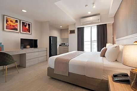 Great care is taken to ensure guests experience comfort through top-notch services and amenities. Stay connected with your associates, as complimentary Wi-Fi is available during your entire visit.When arriving by car, you'll be grateful for the on-site complimentary parking at hotel. The hotel offers reception amenities including luggage storage and safety deposit boxes to ensure a comfortable stay for guests.Whether it's an extended stay or simply needing fresh attire, laundromat, dry cleaning service and laundry service provided by hotel ensures your cherished travel garments stay spotless and accessible.The hotel's daily housekeeping ensures an excellent option for your stay.To ensure the well-being and convenience of all visitors, smoking is strictly prohibited throughout the entire hotel.Smoking is permitted solely in the specified smoking zones allocated by hotel.In order to ensure the utmost level of relaxation, the guestrooms feature an inviting design and are equipped with all basic necessities, creating a delightful stay experience.To ensure a pleasant stay, a selection of rooms at hotel come furnished with linen service, blackout curtains and air conditioning, all designed with your ease in mind.At Aspira Residence Ruamrudee, various room configurations are available, featuring separate living room and balcony or terrace in some rooms. In select rooms, visitors can enjoy a touch of amusement with the availability of television and cable TV for their entertainment needs.Within specific rooms, a refrigerator and bottled water is conveniently available for your use.Understanding the significance of bathroom facilities in enhancing visitor contentment, hotel offers a hair dryer, toiletries and bathrobes within a few chosen chambers. Throughout the day, engage in the entertaining activities available at Aspira Residence Ruamrudee. Guests who enjoy maintaining their fitness regimen while on holiday can visit the fitness center provided by hotel.