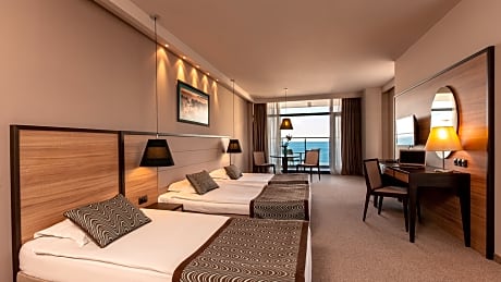Just 165 ft from the beach in Golden Sands, the Astera Hotel & Spa with FREE PRIVATE BEACH provides free access to its indoor and outdoor pools and to the fitness center. Free Wi-Fi access is available in the hotel lobby. The Astera Hotel features 2 restaurants newly built in 2013, the Rustic and the Aqua. A selection of fresh juices is available at the Vitamin Bar in the spa area. On a terrace with a view of the sea, the Astera Hotel & Spa with FREE PRIVATE BEACH's Belleview snack bar serves fresh salads, light breakfasts, and creative drinks and cocktails. The spa area features a sauna, steam bath, hot tub, and sun bed. It can be used for an additional fee.