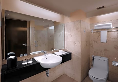 Experience an abundance of unparalleled facilities and features at Grand Dafam Braga Bandung.Maintain seamless communication using the complimentary Wi-Fi at hotel. Discovering Bandung becomes even more accessible, thanks to the taxi amenities provided at the hotel. Guests can avail parking facilities at the hotel. During your stay at this fantastic hotel, the attentive front desk personnel can provide you with a range of amenities such as concierge service and luggage storage. At the hotel, utilize the on-site dry cleaning service and laundry service to maintain your beloved travel attire fresh, allowing you to bring fewer clothes. For visitors wishing to smoke, designated smoking zones can be found.At Grand Dafam Braga Bandung, every guestroom is provided with convenient amenities and fittings to ensure a comfortable stay.Enhance your experience at hotel with the knowledge that certain rooms are equipped with linen service, blackout curtains and air conditioning for your convenience. At Grand Dafam Braga Bandung, each visit offers an array of intriguing room configurations, featuring accommodations with separate living room and balcony or terrace, ensuring a distinct experience every time.Certain rooms boast in-room amusement features such as television and cable TV, offering guests an enjoyable stay.In select rooms within the hotel, a refrigerator, a coffee or tea maker, bottled water, instant coffee and instant tea is available to cater to your requirements when desired. In the hotel, certain guest bathrooms come equipped with essential bathroom amenities, such as a hair dryer, toiletries and bathrobes, ensuring a comfortable stay for guests. Begin your day feeling refreshed and invigorated as you enjoy a delightful cup of quality coffee available at the cafe situated within the hotel.