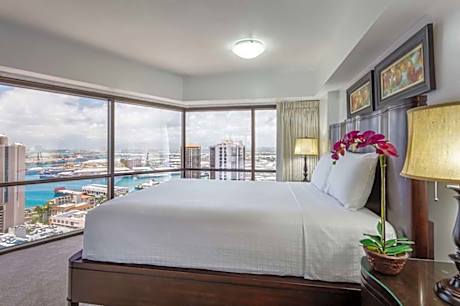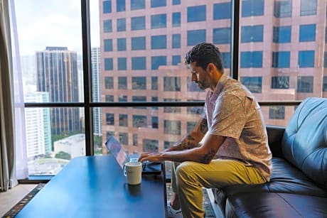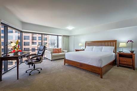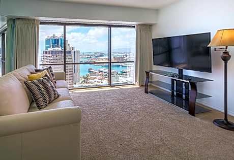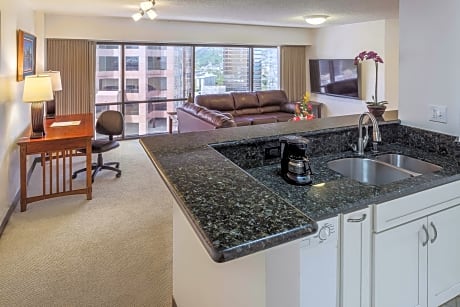 W20380736-02 This business friendly hotel is 5 minutes’ walk away from attractions such as the Hawaii State Capitol Building and the Hawaii State Art Museum. Each suite at Aston at the Executive Center Hotel offers floor-to-ceiling windows with city, ocean or mountain views. Offering free WiFi. Each suite at the property features a cable TV, a microwave and a refrigerator. Central air conditioning is provided for our units. Select units that offer fully equipped kitchens or kitchenettes are perfect for extended stays. Housekeeping is available every 3rd day of stay service. An uheated swimming pool and a hot tub are part of this Honolulu hotel. Hawai’i Pacific University is just 10 minutes’ walk away from Aston at the Executive Center Hotel. Chinatown is 8 minutes’ drive away. Honolulu International Airport is 10 minutes' drive from the property.