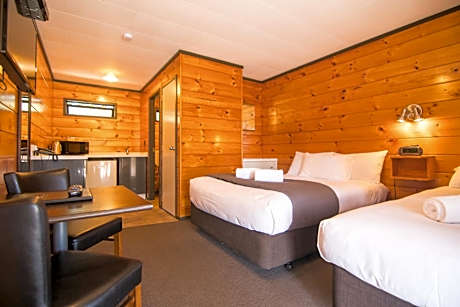Offering accommodations with free Wi-Fi, Parklands Motorlodge & Holiday Park is located near the popular trout fishing waters of the Tongariro River, in the shadow of the Mt. Pihanga Volcano. The Parklands Motorlodge & Holiday Park offers self-contained one-bedroom apartments with a kitchenette and satellite TV. Wholesome food is served at the popular Parklands' onsite eatery. Guests who catch trout during fishing trips can have it prepared by the in-house chef. Open from 6PM Mon - Sat (excluding public holidays) Activities such as fly fishing, whitewater rafting and scenic flights can all be booked at the front desk. Mt. Ruapehu’s Whakapapa Ski Resort is 35 minutes' drive away. The popular Tongariro Alpine Crossing and the Tokaanu Thermal Pools are only minutes away. The Parklands Motorlodge & Holiday Park is 25 mi from central Taupo and the Taupo Airport. Free parking is available. Please note, the Cabins are not self contained, and Guests will need to use the shared bathrooms, and kitchen facilities in camping ground.