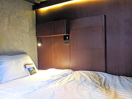 This bed in dormitory features air conditioning and seating area